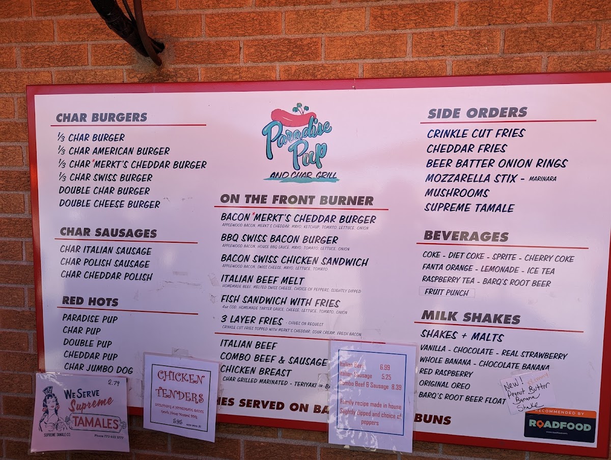 Welcome to Paradise Pup, a fast food gem located at 1724 S River Rd, Des Plaines, IL. This delightful eatery has been a local staple for decades, charming both long-time residents and newcomers alike with its nostalgic vibe and mouthwatering menu. Nestled between two automotive businesses, Paradise Pup may be unassuming from the outside, but step inside or approach the order window, and you're in for a treat!